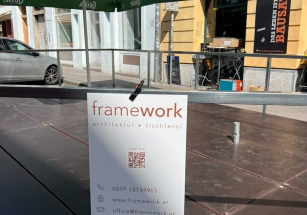 Entgegen dem Bestand wurde beim Umbau als oberer Abschluß ein umlaufender Rahmen installiert. Dadurch konnte einerseits ausreichend Stabilität erlangt werden und andererseits konnte nun eine umlaufende Rückenlehne angebracht werden. Der Gastgarten funktioniert als systematischer Rahmen, der alle Freiheiten für Betreiber und Nutzer offeriert.